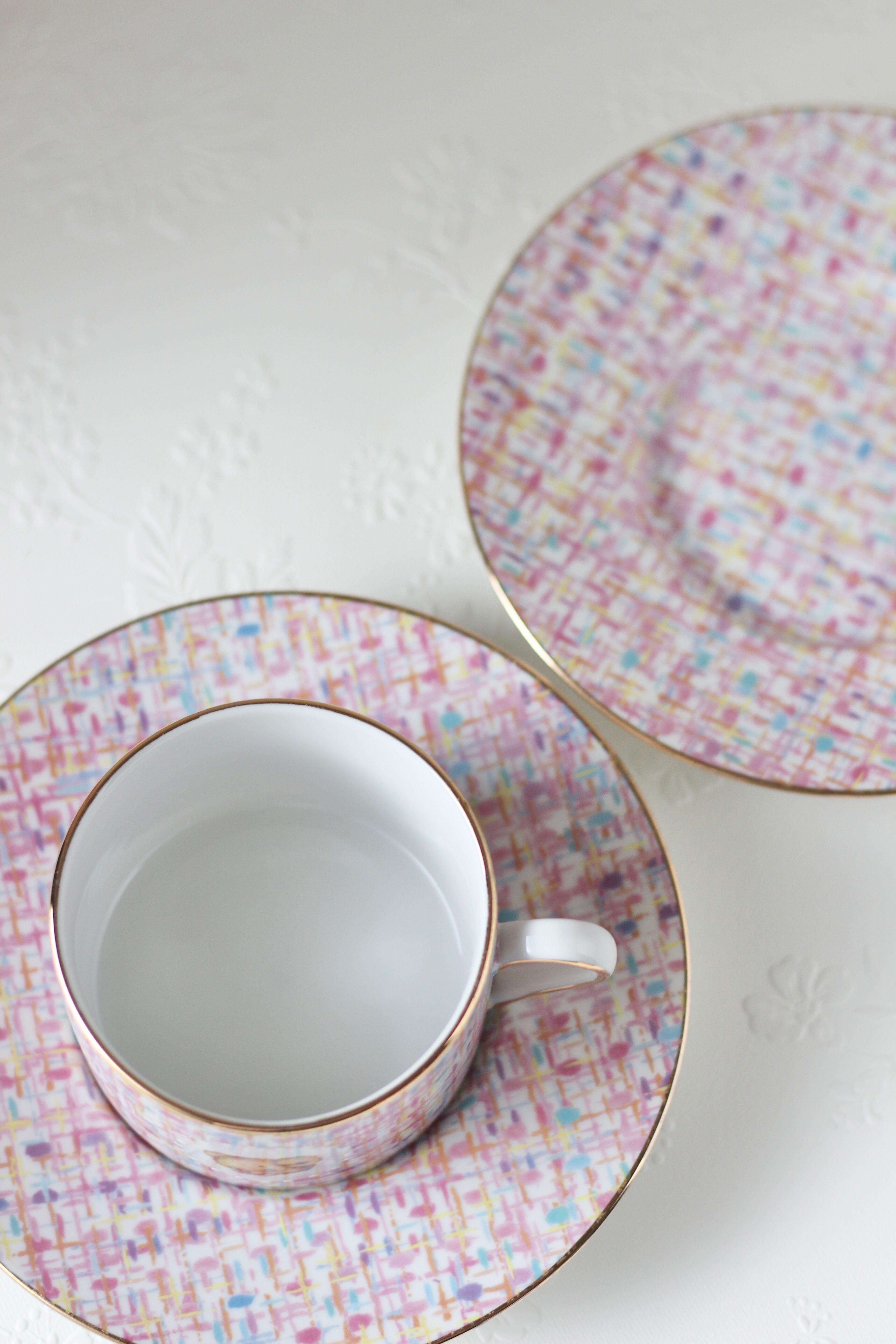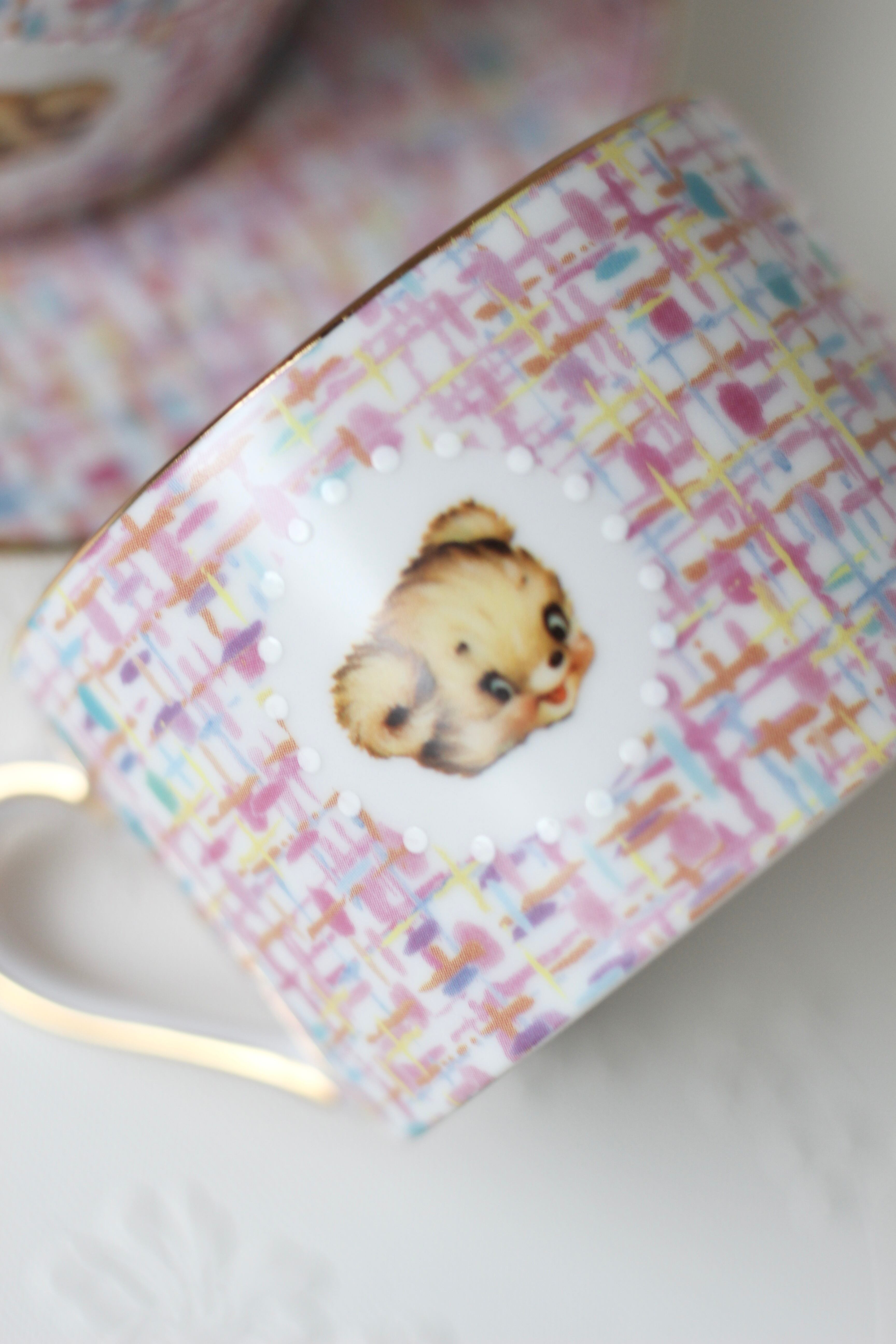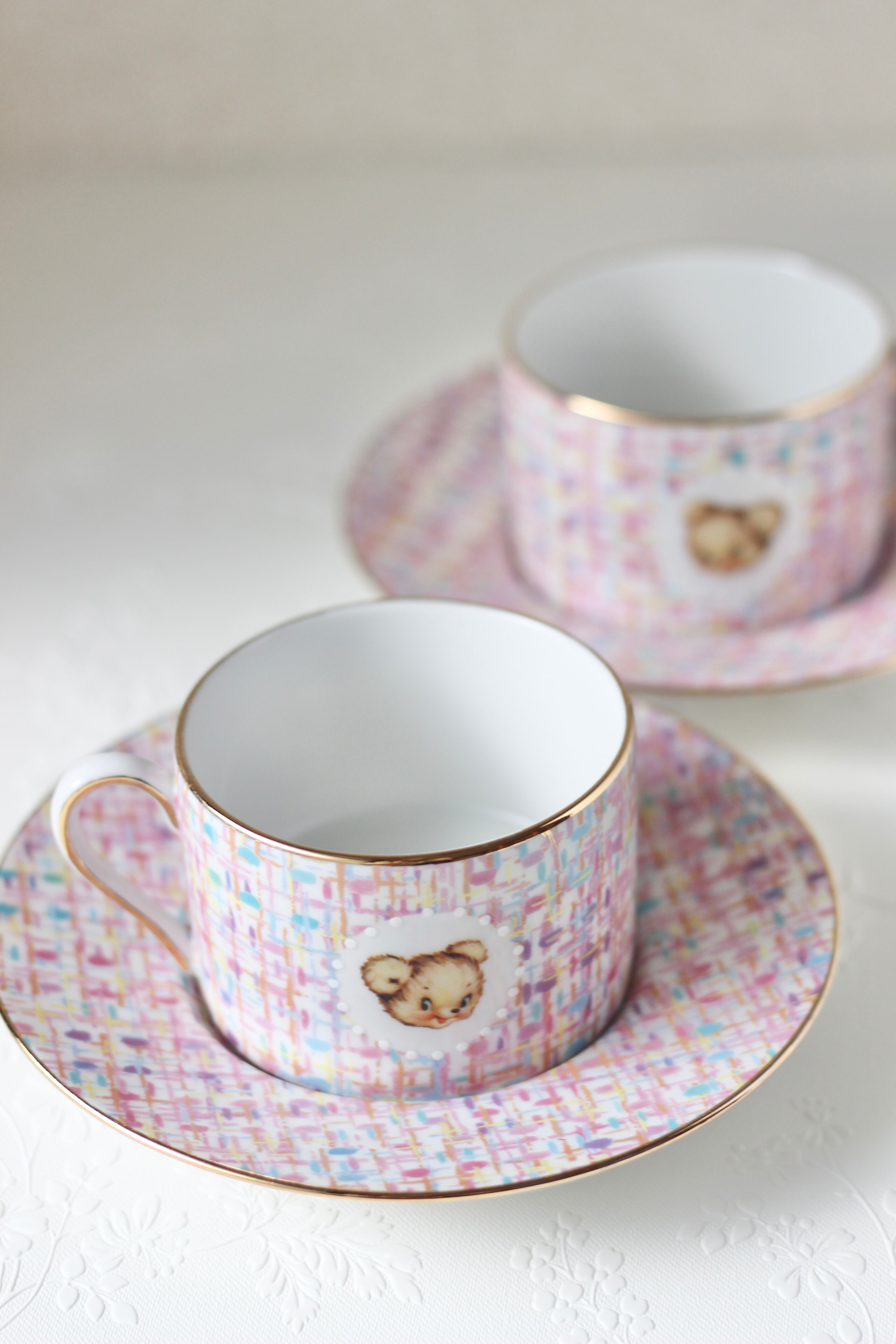 ピンクベースのツイード柄に、くまさんを合わせて可愛いティーカップを作りました。