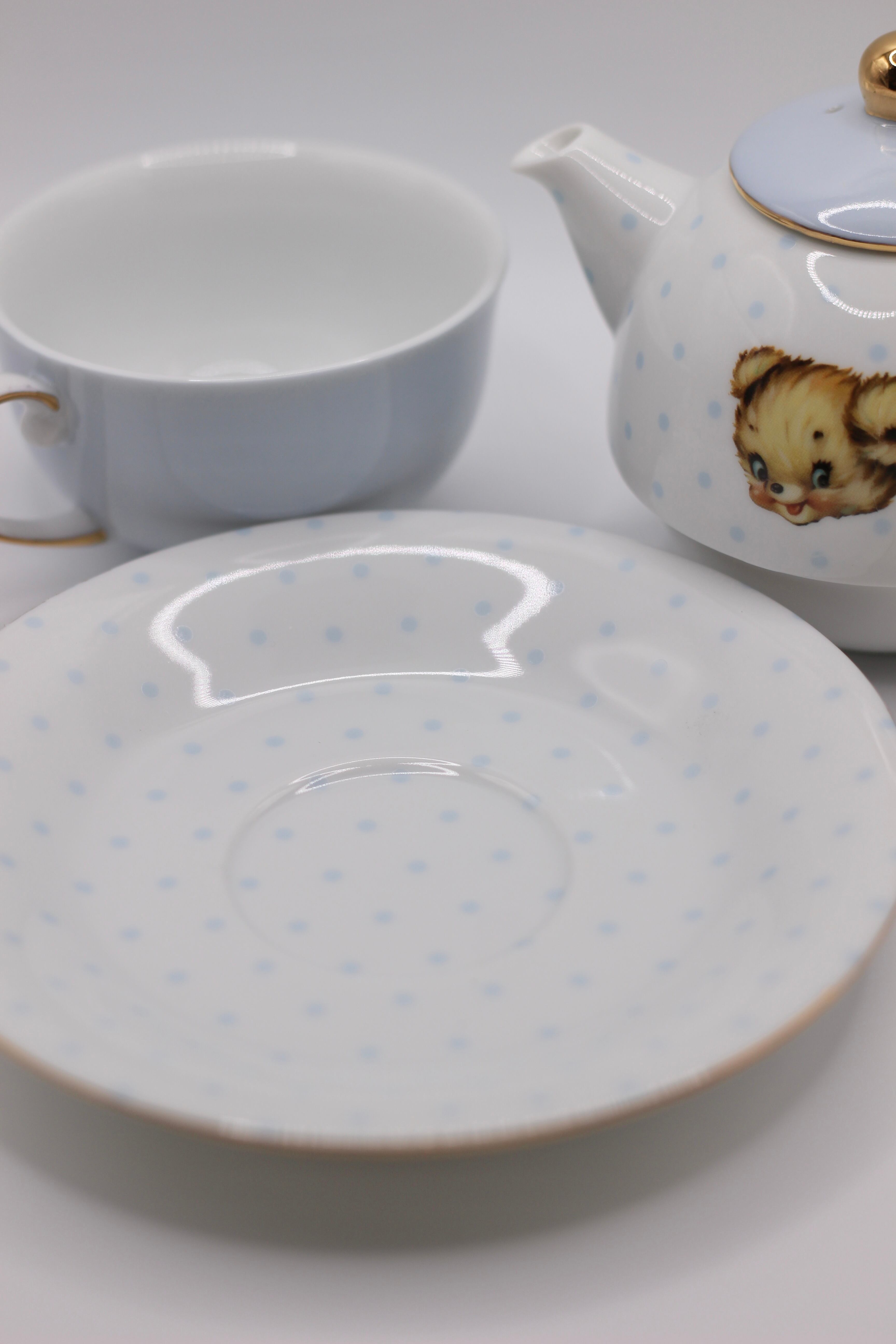 水色と水色ドットを組み合わせた可愛いレトロなくまさんデザインです。