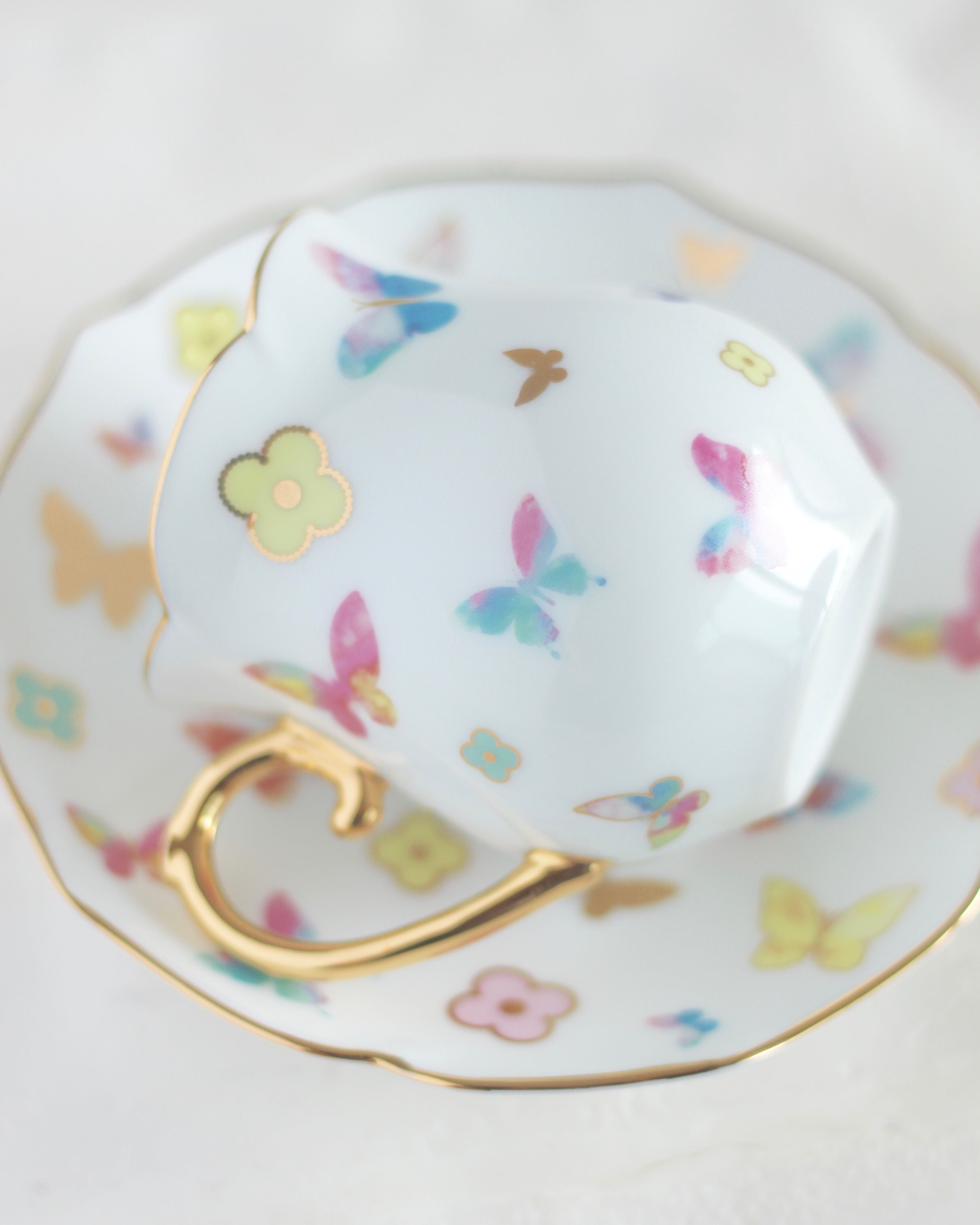 かわいいお花型のカップにキラキラのちょうちょがとってもかわいいです!